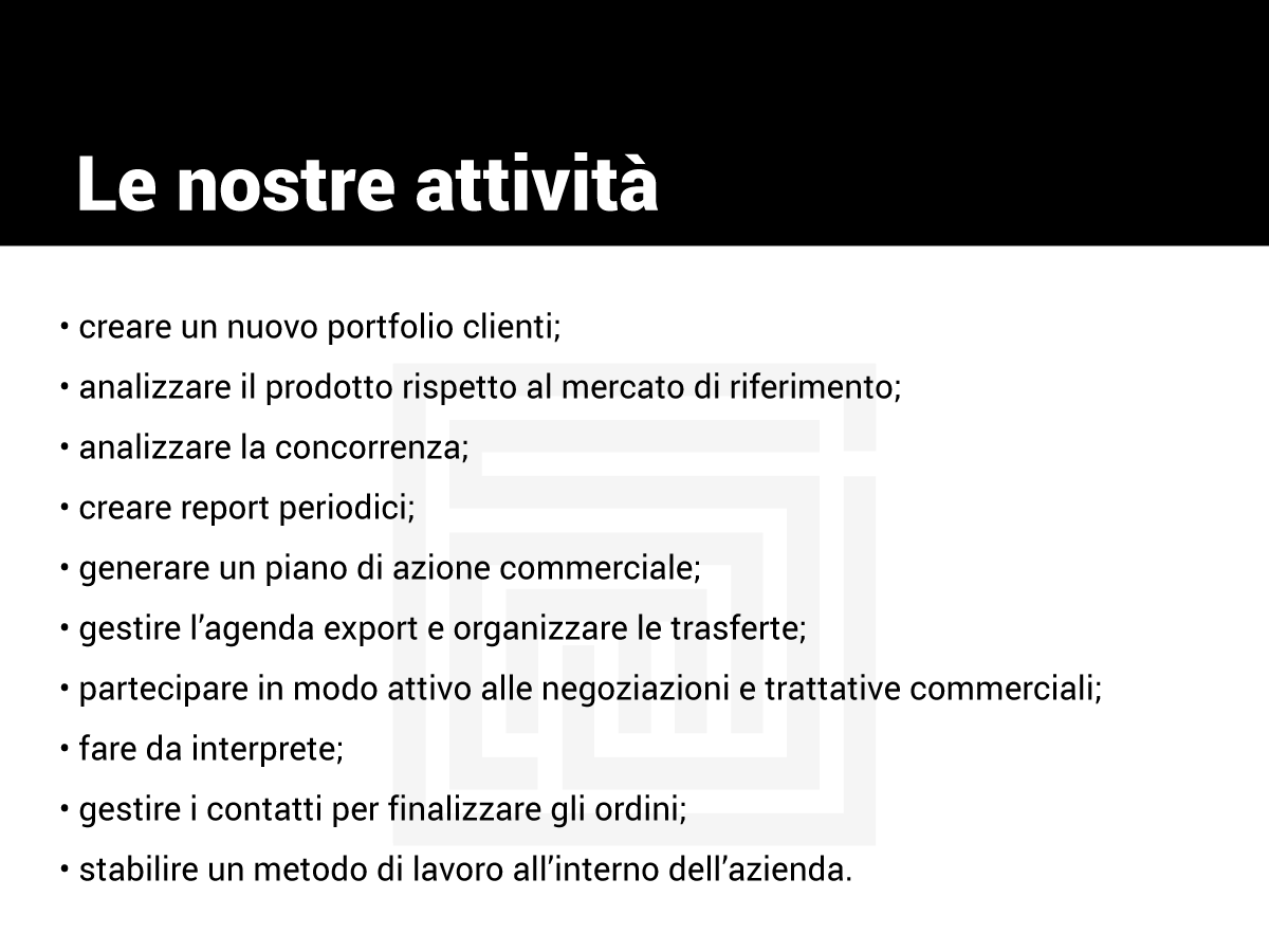 Come temporary export manager ci occupiamo di molte attività.